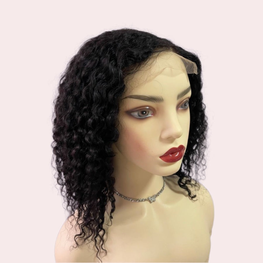Black Front Lace Afro Kinky Curly Human Hair Bob Wig 200% Density