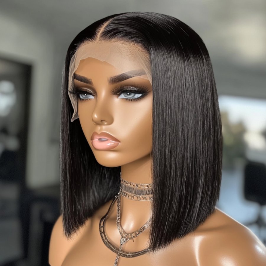 14 Inch Black 13x4 HD Swiss Front Lace Straight Human Hair Bob Wig
