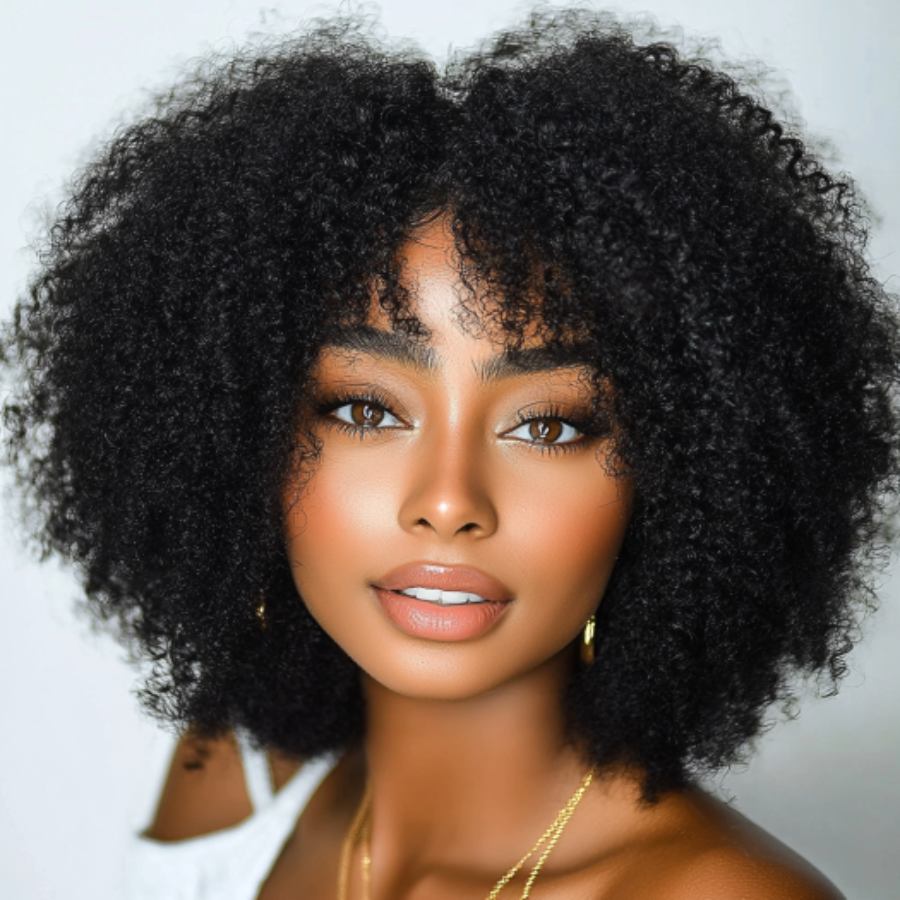 GALMAO 16-inch Black Afro Kinky Curly Wig for Afro-American Women features a rich black color and high-quality synthetic material, it's the perfect accessory for any occasion.