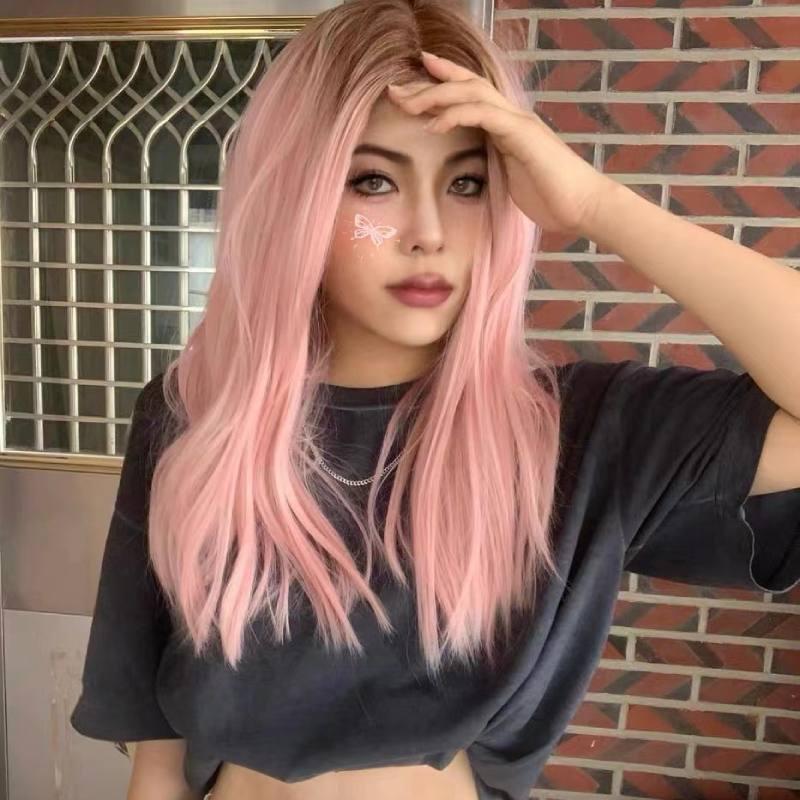 Ombre Pink Hand Made Front Lace Straight Wig