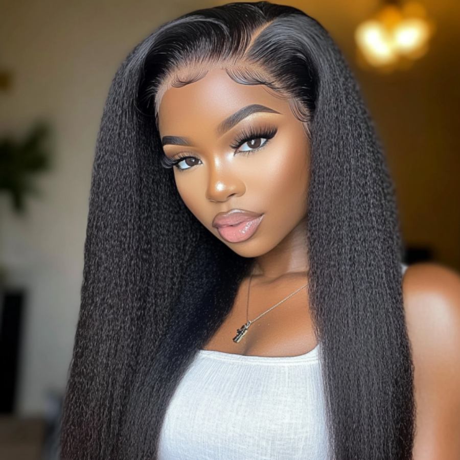 22 Inch Black 13x4 HD Swiss Front Lace Kinky Straight Human Hair Wig