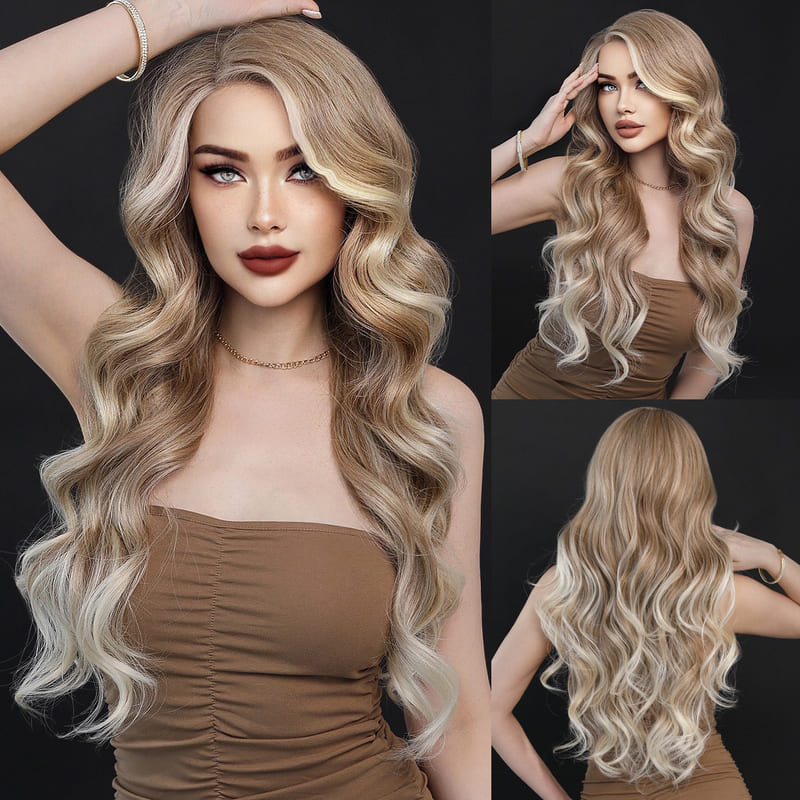 Enhance your look with GALMAO's stunning 28'' Blonde Front Lace Body Wave Wig with Highlights. It features soft body waves that add natural volume and movement. The highlights woven throughout the blonde wig create a sun-kissed effect, perfect for adding brightness. A lace front ensures a seamless, realistic hairline.