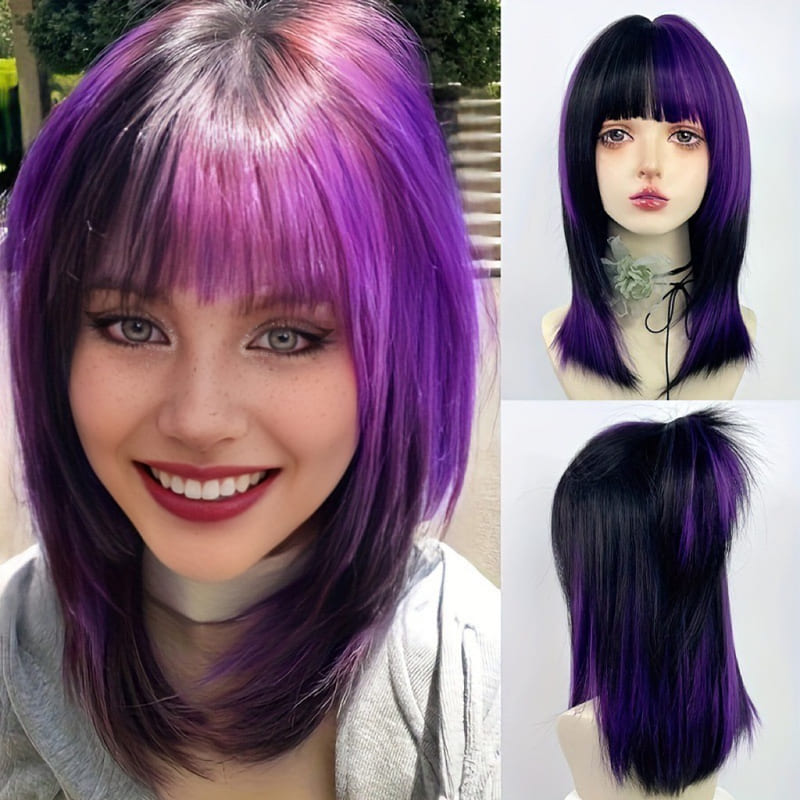 GALMAO's Half Black & Purple Straight Shoulder Length Wig combines elegance with a pop of color. Whether you’re attending an event or want to switch up your style, this wig is a chic choice!