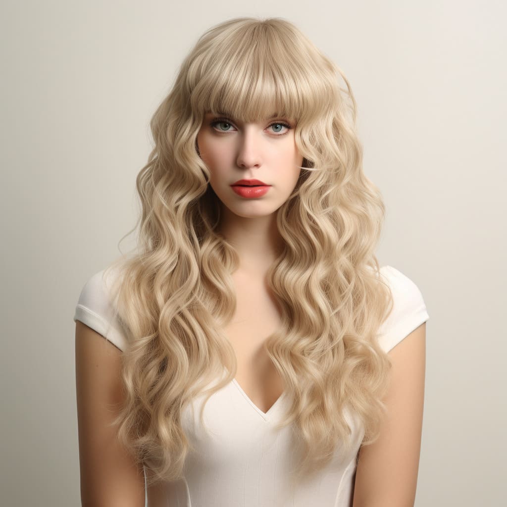 22‘’ Long Blonde Body Wave Wig with Bangs
