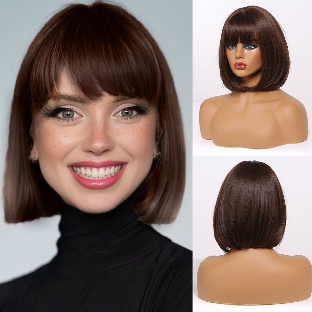 Dark Brown Short Straight Fringe Bob Wig for Ladies