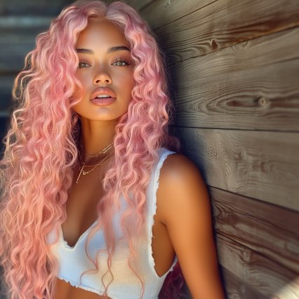 Long Light Pink Deep Curly Wave 13x4 Front Lace Wig