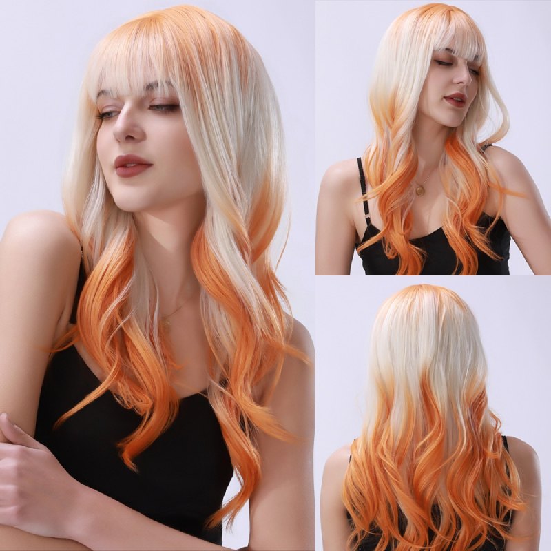 Ombre Orange & Beige Fringe Long Body Wave Wig for Party