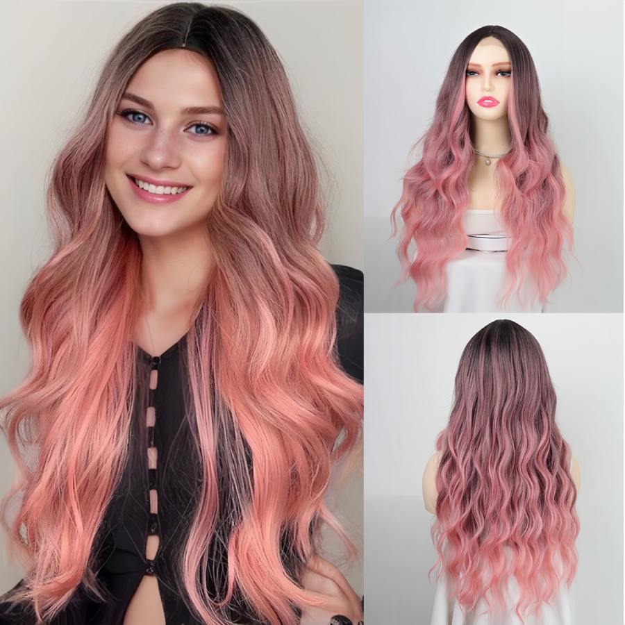 Ombre Pink Glueless Small Front Lace Long Deep Wave Wig