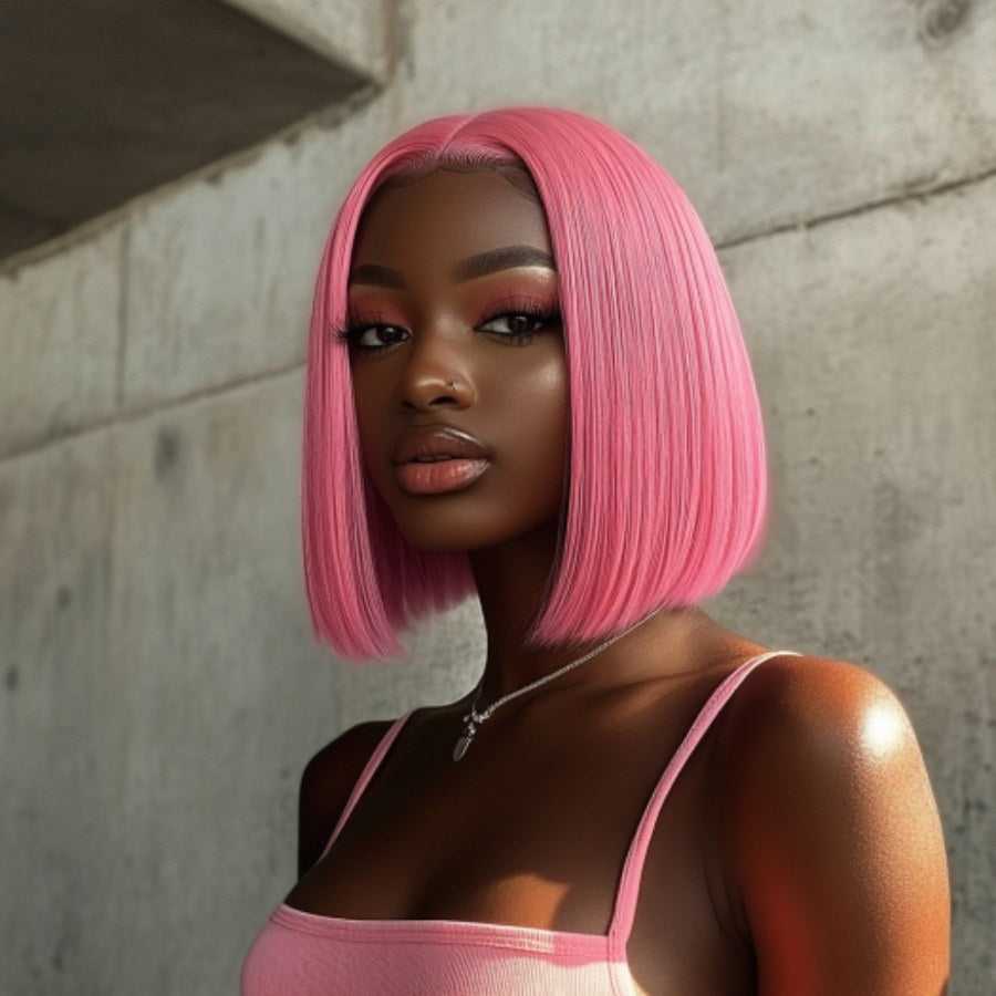 Pink 13 x 4 Front Lace Free Part Human Hair Straight Bob Wig