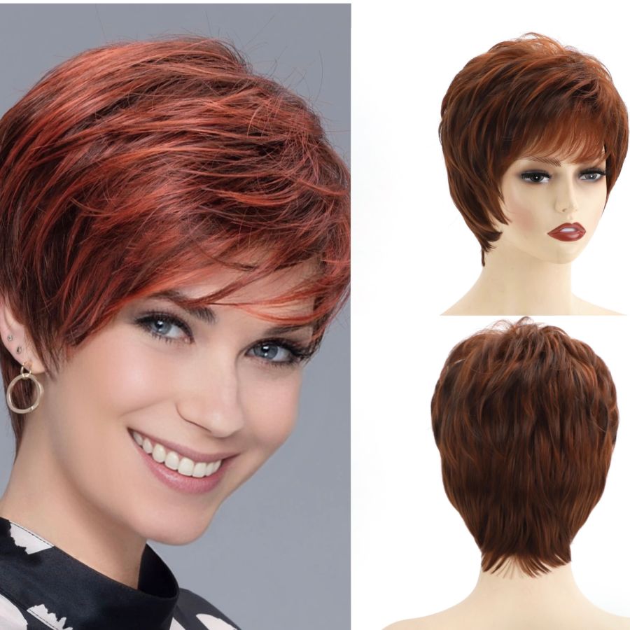 Pixie Cut Brown Layered Straight Fringe Wig for Seniors